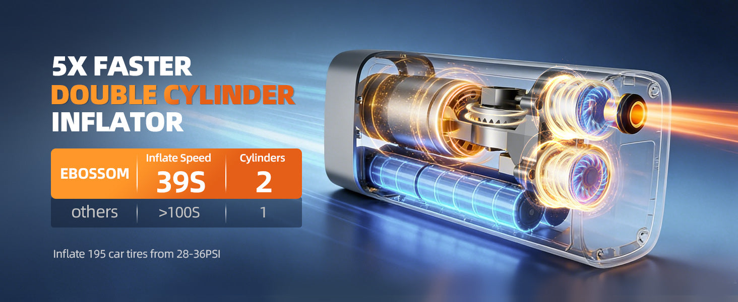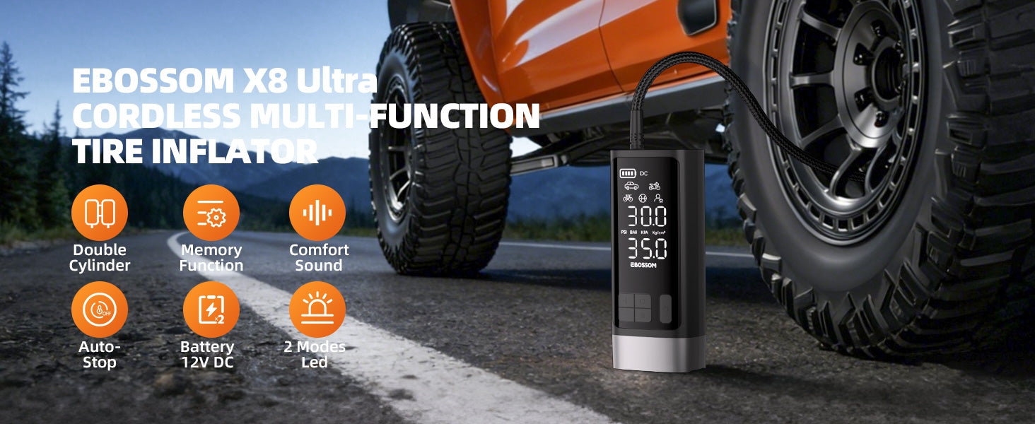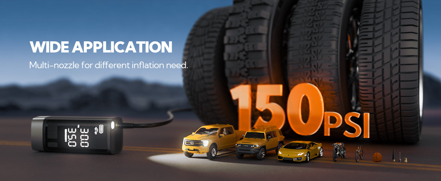 X8 Tragbarer Luftkompressor 150PSI, Doppelzylinder-Luftpumpe mit Akku