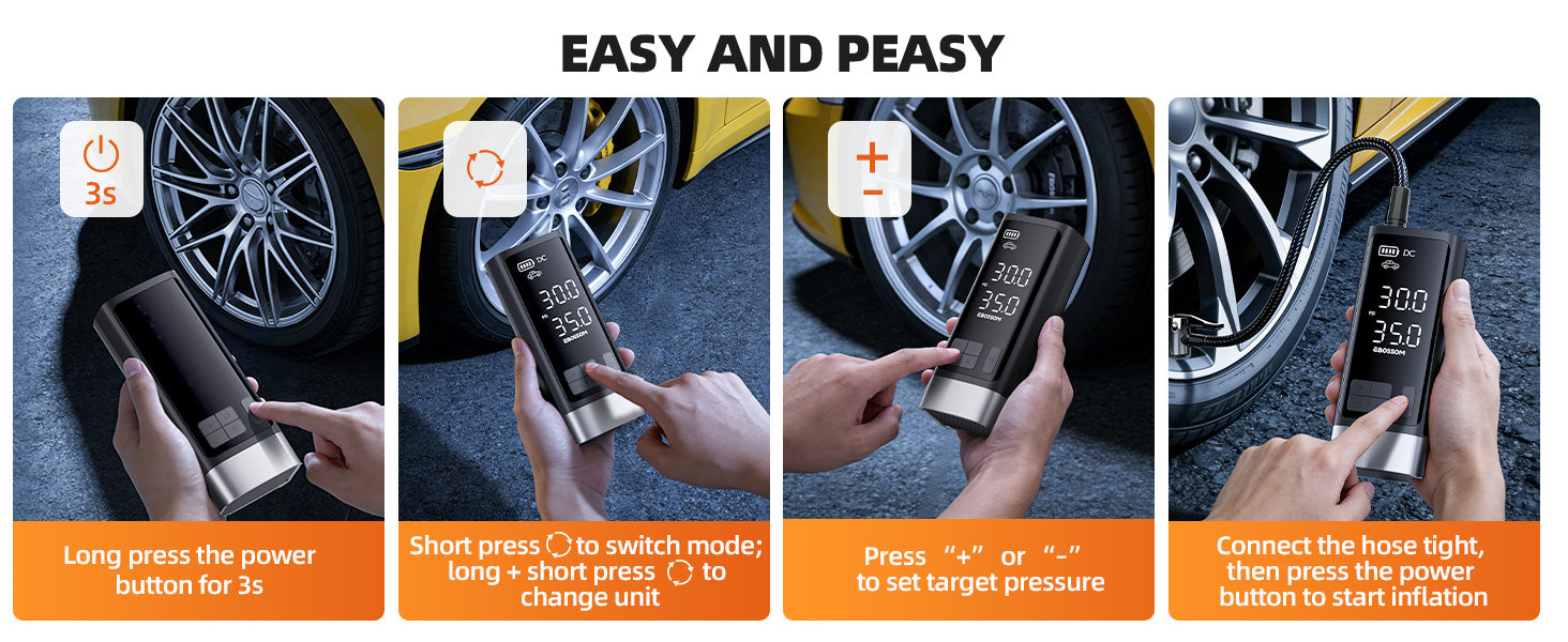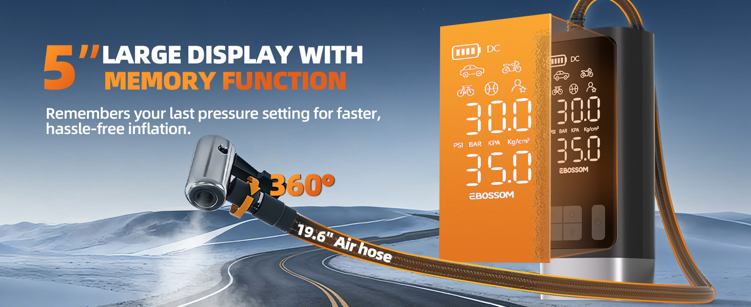 - NTELLIGENTE BEDIENUNG & ANZEIGE: Großes Digitaldisplay mit mehreren voreingestellten Modi und automatischer Druckspeicherung – für schnelle und einfache Wiederverwendung. Schaltet sich automatisch ab, wenn der Solldruck erreicht ist. Kein Rätselraten, kein Überpumpen.