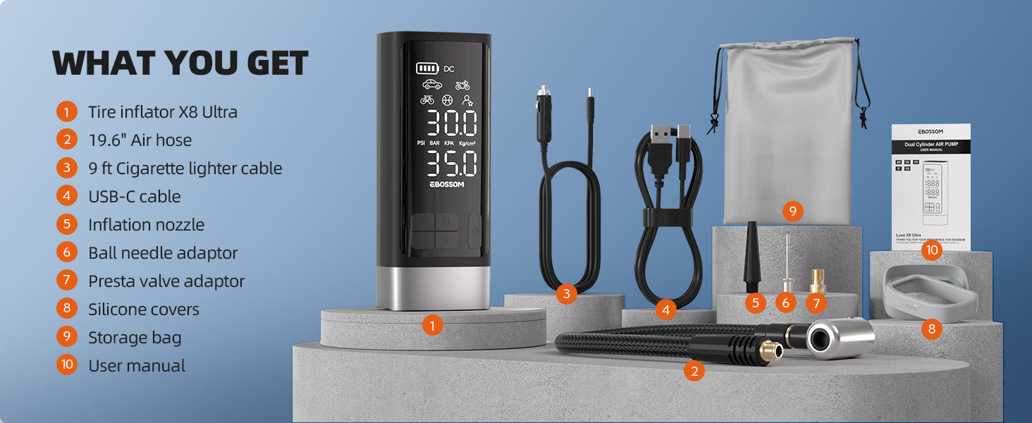 - VERSCHLEIßFESTE SILIKONBASE: Tragbare Luftpumpen vibrieren oft während des Betriebs und nutzen sich unten ab. Unser X8-Modell verfügt daher über rutschfeste Silikonschoner, um Bewegung zu minimieren und Oberflächen vor Kratzern zu schützen.