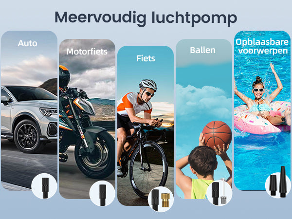 El inflador de neumáticos EBOSSOM tiene una presión máxima de 10,3 bar. Es adecuado para inflar múltiples artículos: neumáticos de coche, moto, bicicleta, balones deportivos y flotadores.