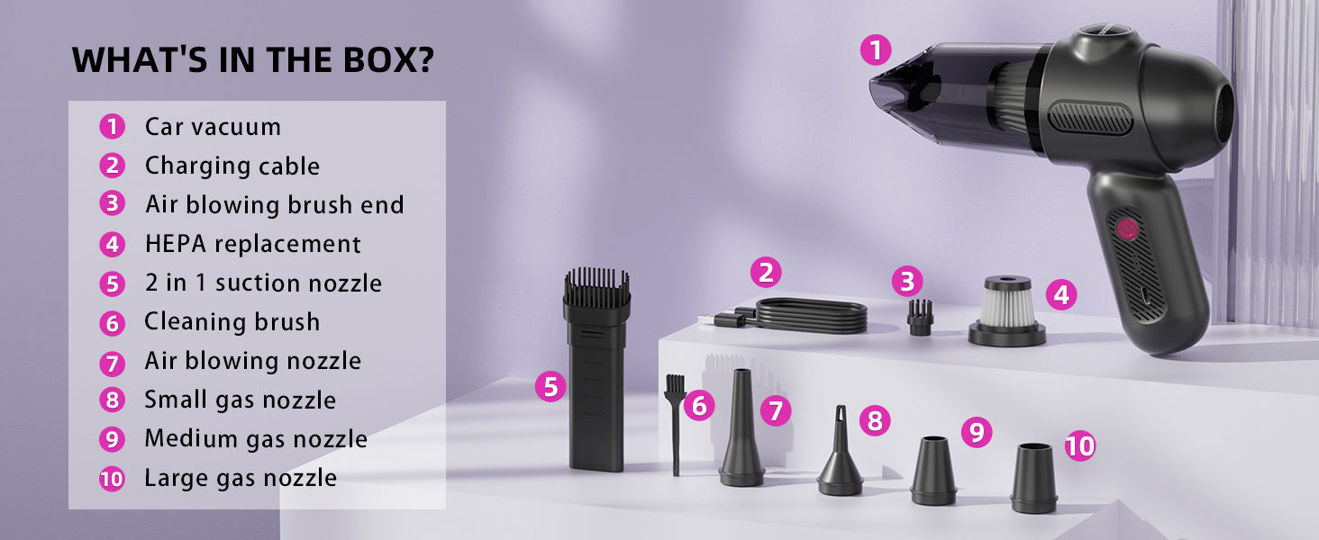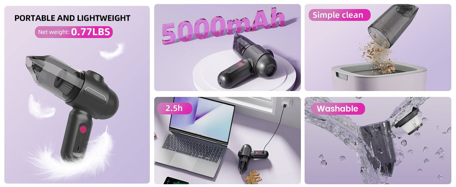 This vacuum’s compact, lightweight design makes it easy to carry anywhere, whether for your car, office, or small home spaces. With its cordless convenience and multiple attachments, it’s perfect for quick touch-ups wherever you need them.